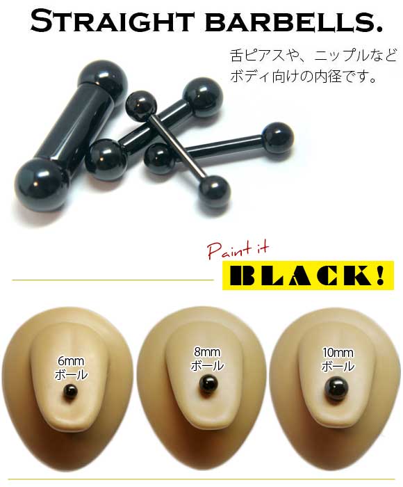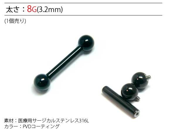 本日P2倍 8G ボディピアス 黒 ブラック ストレートバーベル ピアス インターナル 舌ピアス 舌ピ つけっぱなし 金属アレルギー対応 316L 高品質 ステンレス