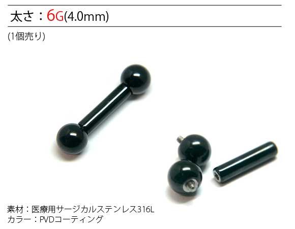 【全品P2倍】6G ボディピアス 黒 ブラック ストレートバーベル ピアス インターナル 舌ピアス 舌ピ つけっぱなし 金属アレルギー対応 316L 高品質 ステンレス
