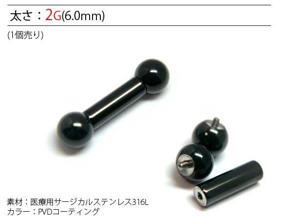 本日P2倍 2G ボディピアス 黒 ブラック ストレートバーベル ピアス インターナル 舌ピアス 舌ピ つけっぱなし 金属アレルギー対応 316L 高品質 ステンレス