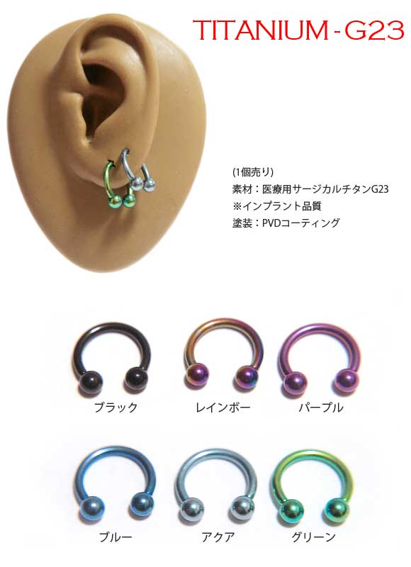 本日P2倍 最高グレード 純チタン 14G 16G ピアス ボディピアス サーキュラーバーベル カラー 金属アレルギー対応 サージカルチタン G23 つけっぱなし 軟骨