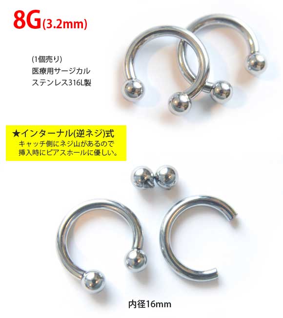 本日P2倍 8G ピアス ボディピアス サーキュラーバーベル 金属アレルギー対応 316L 高品質 ステンレス インターナル 拡張 つけっぱなし