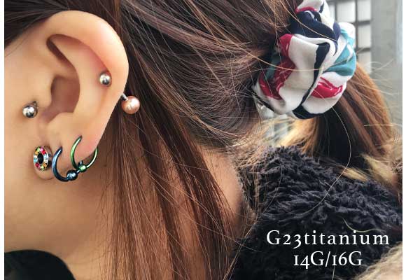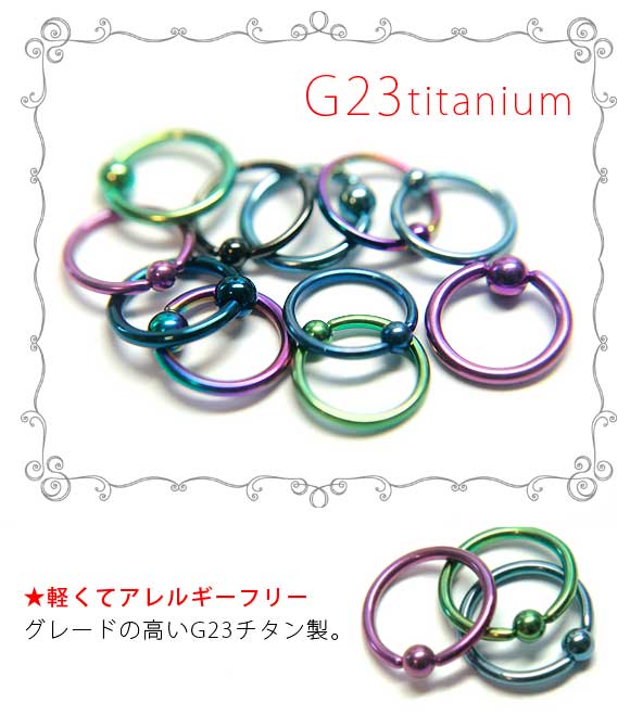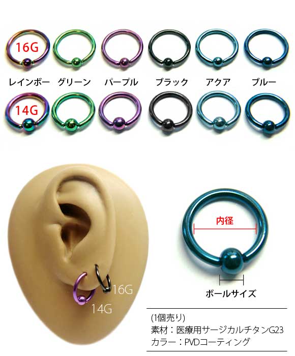 本日P2倍 調整済 純チタン 14G 16G ピアス 軟骨 ボディピアス キャプティブビーズリング CBR フープ カラー 金属アレルギー対応 G23 ファーストピアス