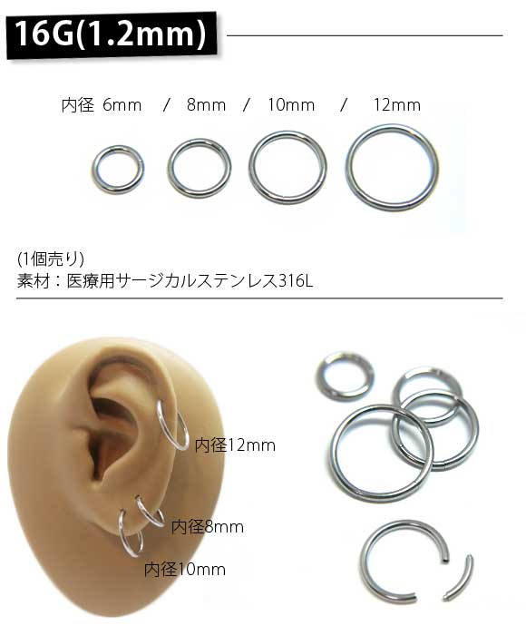 本日P2倍 16G ピアス 軟骨 ボディピアス フープ セグメントリング リング 金属アレルギー対応 316L 高品質 ステンレス ファーストピアス