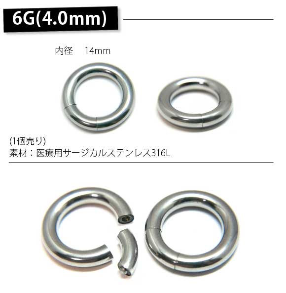 【全品P2倍】6G ピアス ボディピアス フープ セグメントリング リング 拡張 金属アレルギー対応 316L 高品質 ステンレス