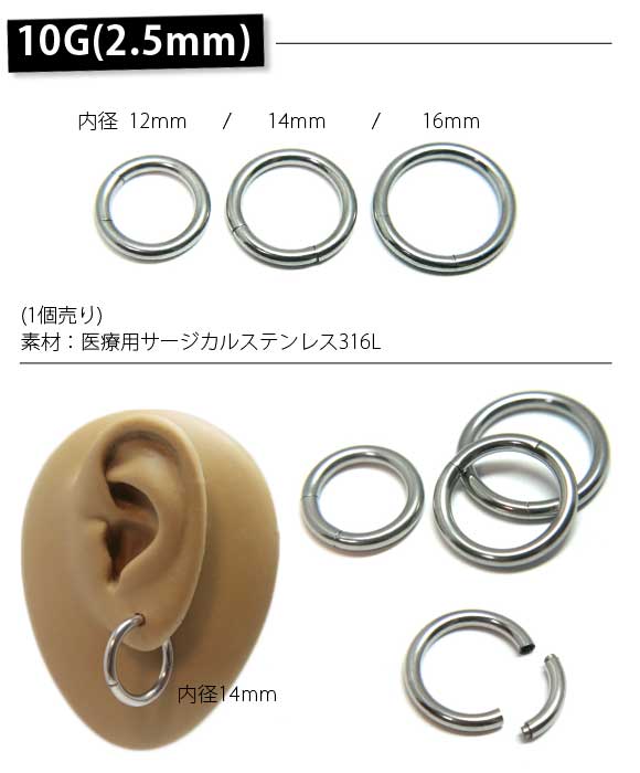 本日P2倍 10G ピアス ボディピアス フープ セグメントリング リング 拡張 金属アレルギー対応 316L 高品質 ステンレス