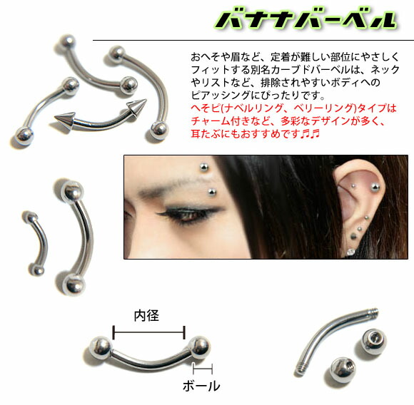 アイブロウ(眉)やへそピアスに最適な形状です。