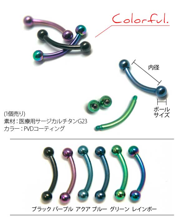 本日P2倍 最高グレード 純チタン16G ボディピアス カーブドバーベル バナナバーベル カラー G23 金属アレルギー対応 軟骨 眉 マディソン ヴァンパイアキス