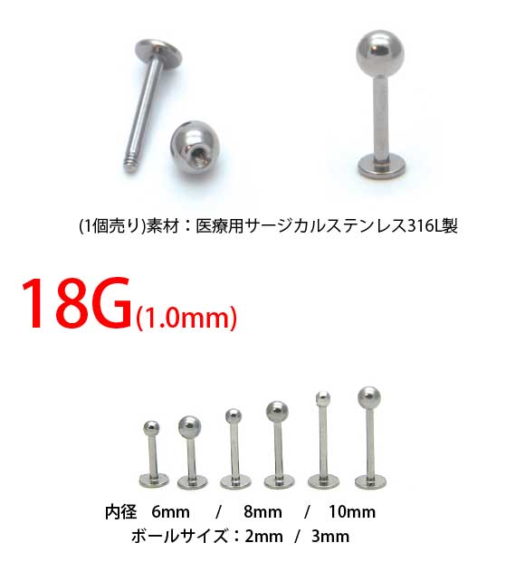 18ゲージ ピアス ファーストピアス 軟骨ピアス 金属アレルギー対応 つけっぱなし シンプル 唇 口ピアス ヘリックス トラガス メンズ レディース