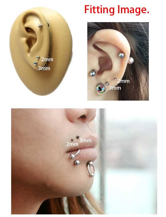 トラガスに使用すると耳の中にボールが落ちる事故が防げ、イヤホンも使えるようになります。