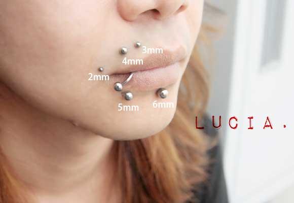 リップ、モンローなど唇の裏に余裕の無い唇部位や舌ピアスに。