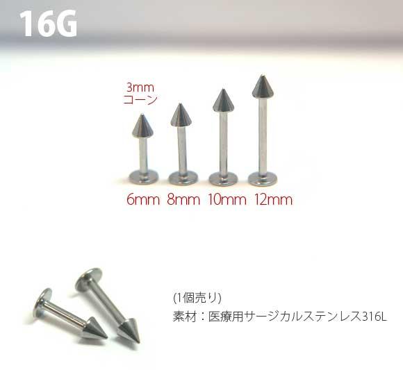 本日P2倍 ▲ 16G ピアス ボディピアス ラブレット スタッド コーン 金属アレルギー対応 316L 高品質 ステンレス 軟骨ピアス トラガス 口ピアス 唇