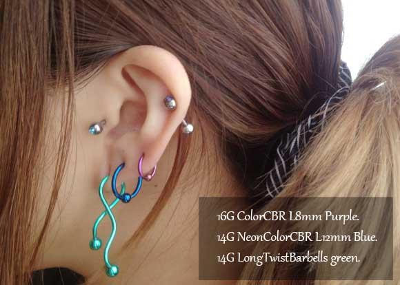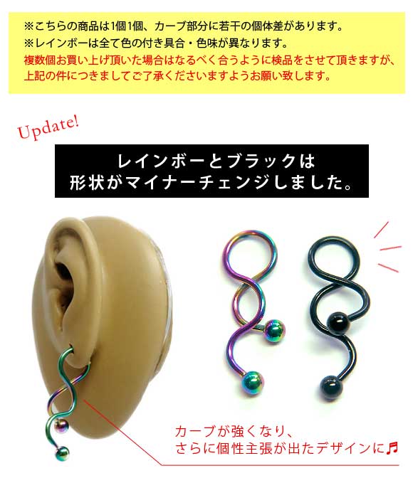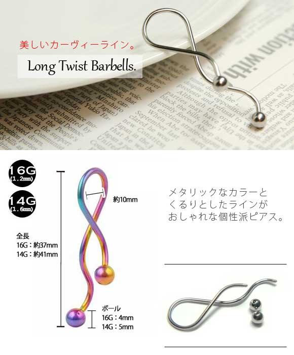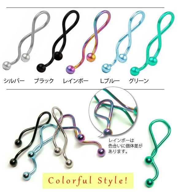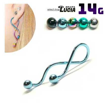 本日P2倍 14G ピアス ボディピアス スパイラルバーベル ロング ムーンサルト インダストリアル カラー 金属アレルギー対応 316L 高品質 ステンレス