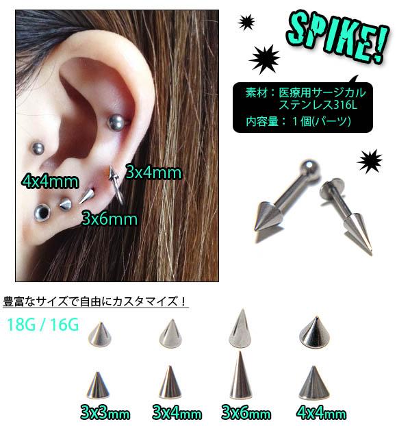 本日P2倍 16G ボディピアス キャッチ のみ 交換パーツ 単品 コーン スパイク エクスターナルスクリューボール 金属アレルギー対応