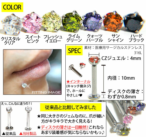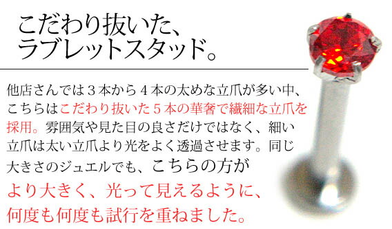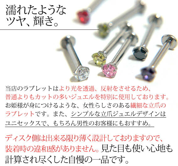 本日P2倍 14G ボディピアス ラブレット スタッド 立爪 うるツヤ ジュエル 立て爪 口ピアス 軟骨ピアス 金属アレルギー対応