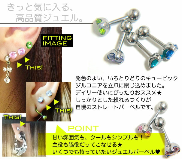本日P2倍 16G ボディピアス 立て爪 ジュエル ストレートバーベル 立爪 金属アレルギー対応 316L 高品質 ステンレス 軟骨ピアス ヘリックス