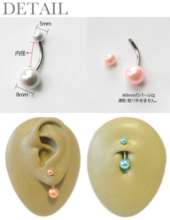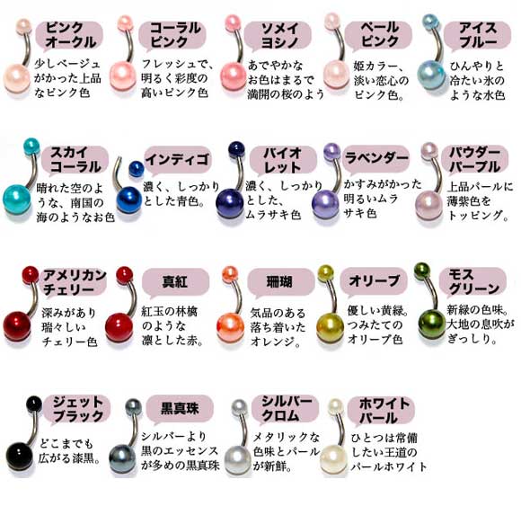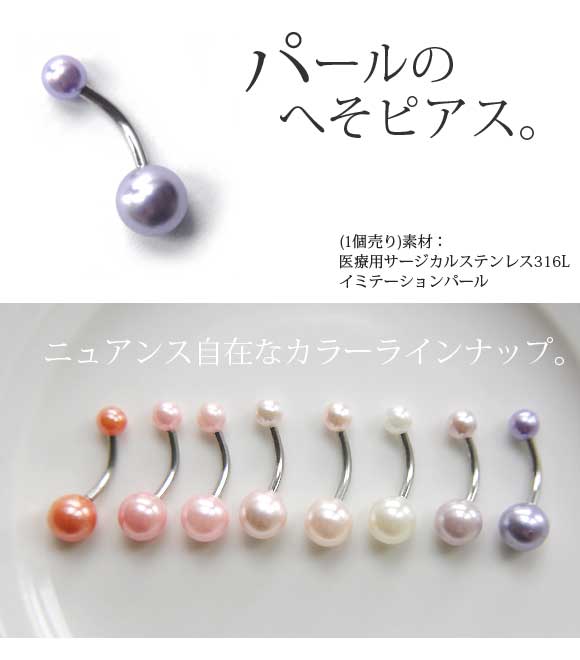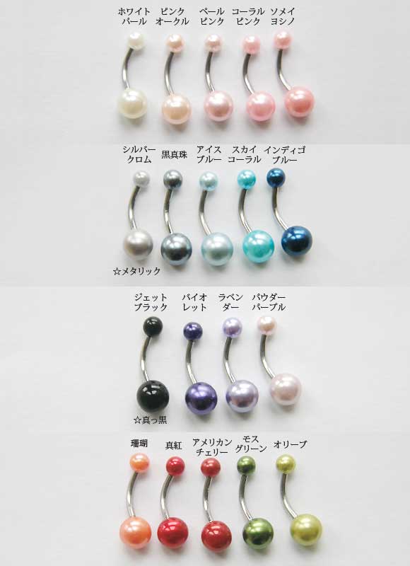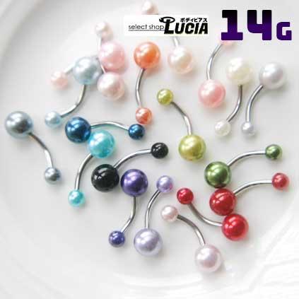 本日P2倍 14G ボディピアス へそピアス 全19色 カラー パール 金属アレルギー対応 316L 高品質 ステンレス