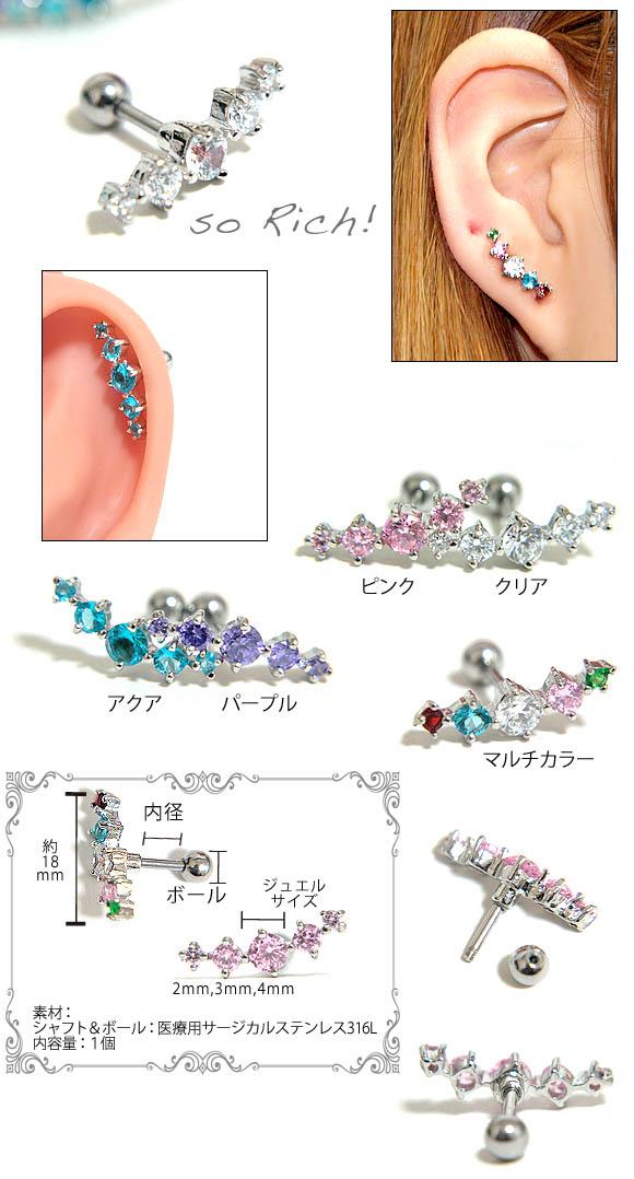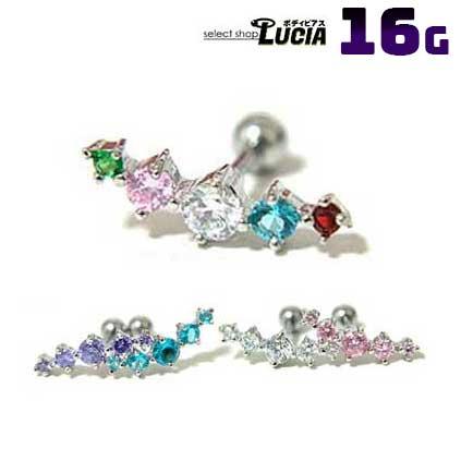 本日P2倍 16G ピアス ボディピアス ストレートバーベル 豪華5連 立爪 ジュエル 金属アレルギー対応 316L 高品質 ステンレス 軟骨ピアス