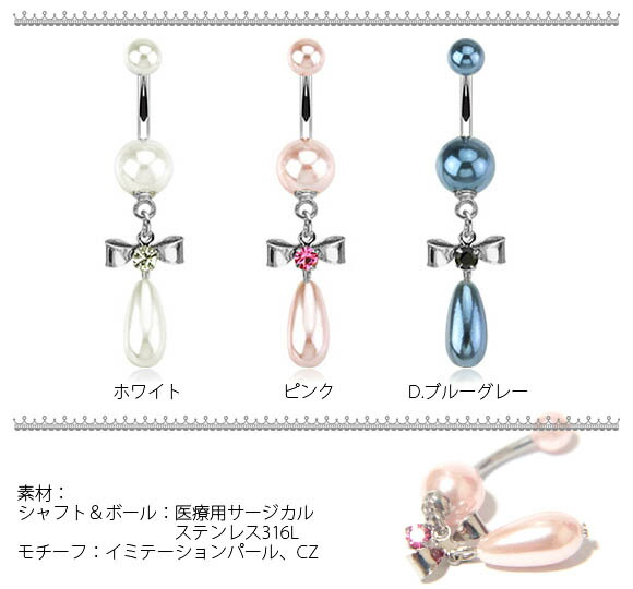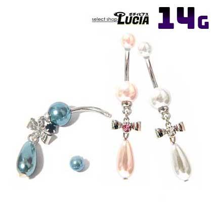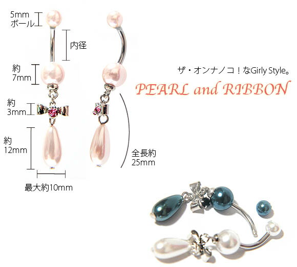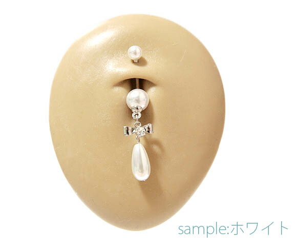 本日P2倍 14G へそピアス ボディピアス パール リボン 可愛い 揺れる 金属アレルギー対応 316L 高品質 ステンレス