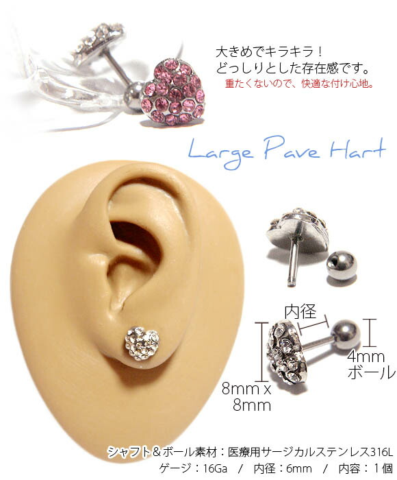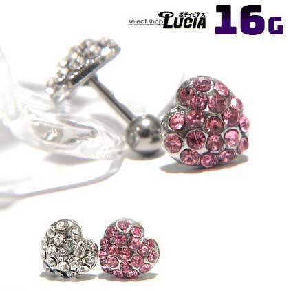 本日P2倍 16G ピアス ボディピアス 大きい ハート パヴェ ストレートバーベル 金属アレルギー対応 316L 高品質 ステンレス 軟骨ピアス