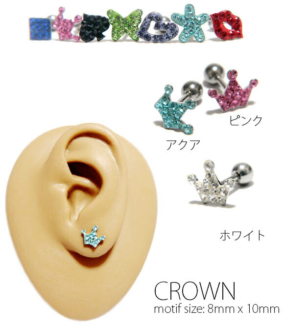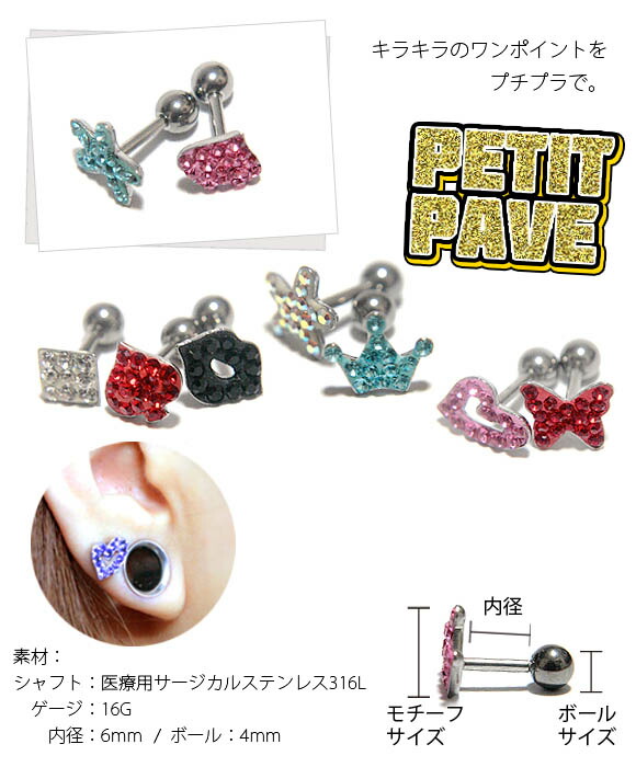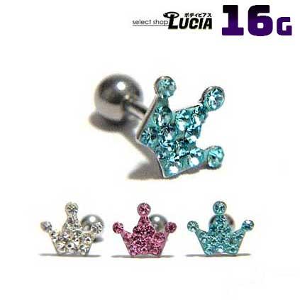 本日P2倍 16G ピアス ボディピアス クラウンパヴェ ストレートバーベル 金属アレルギー対応 316L 高品質 ステンレス 軟骨ピアス