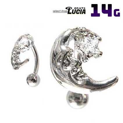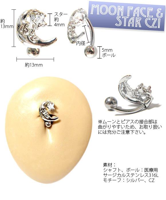 本日P2倍 14G へそピアス ボディピアス ムーンフェイス 月 星 立爪 トップドロップ 金属アレルギー対応 316L 高品質 ステンレス