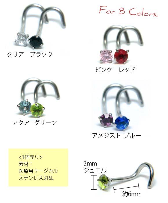 本日P2倍 18G 鼻ピアス ボディピアス スクリュー 立爪 ジュエル 金属アレルギー対応 316L 高品質 ステンレス ノストリル