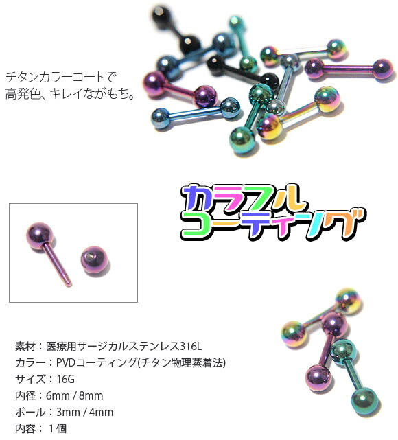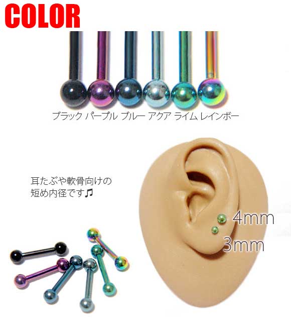 本日P2倍 16G ピアス ボディピアス ストレートバーベル カラー 金属アレルギー対応 316L 高品質 ステンレス 軟骨ピアス