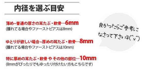 主に耳たぶやヘリックス、トラガスなどの軟骨に