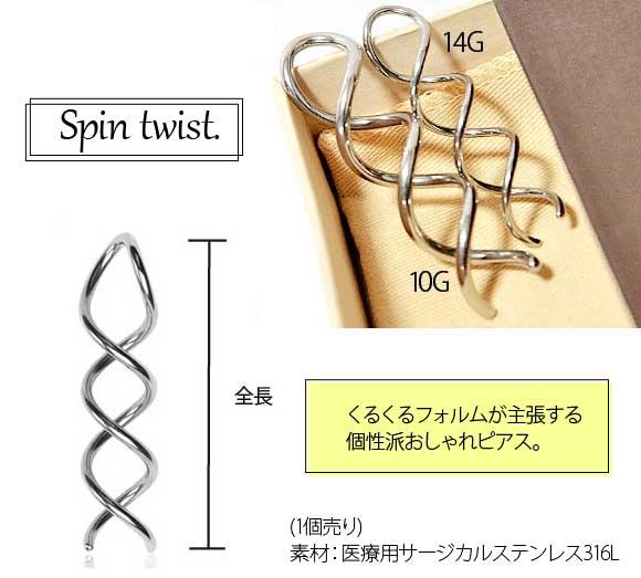 【全品P2倍】10G ピアス ボディピアス スパイラルバーベル スピンツイスト 金属アレルギー対応 316L 高品質 ステンレス ユニーク
