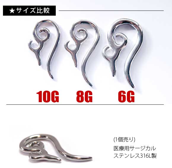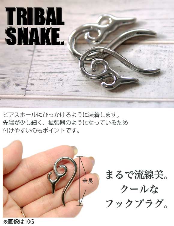 本日P2倍 10G ピアス ボディピアス 変形 トライバル スネーク プラグ フック 金属アレルギー対応 316L 高品質 ステンレス 拡張