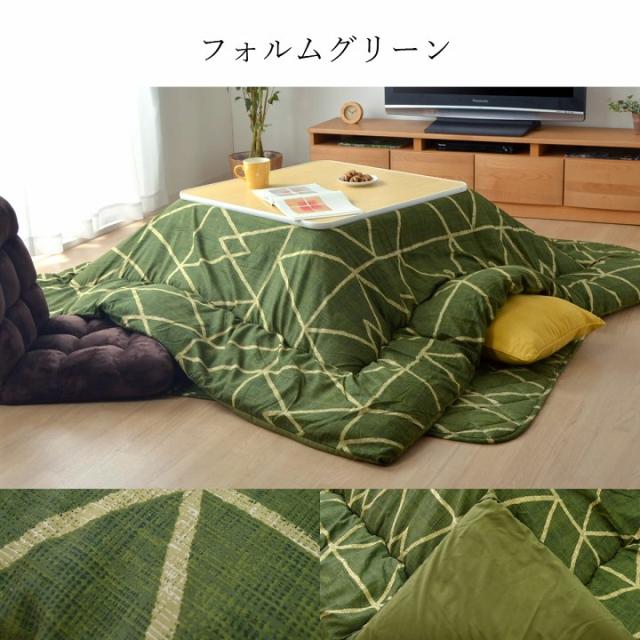 - 写真通りのカラーで、かわいい抹茶色のこたつ布団です。掛け布団は、思ってたよりふかふかで気持ちよい肌触りです。敷布団は、若干薄いですが縫製はキレイだしこたつ布団セットとしては大満足です。急に寒くなったの...