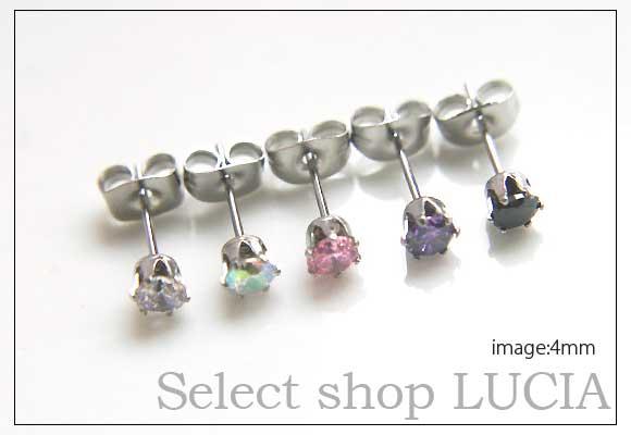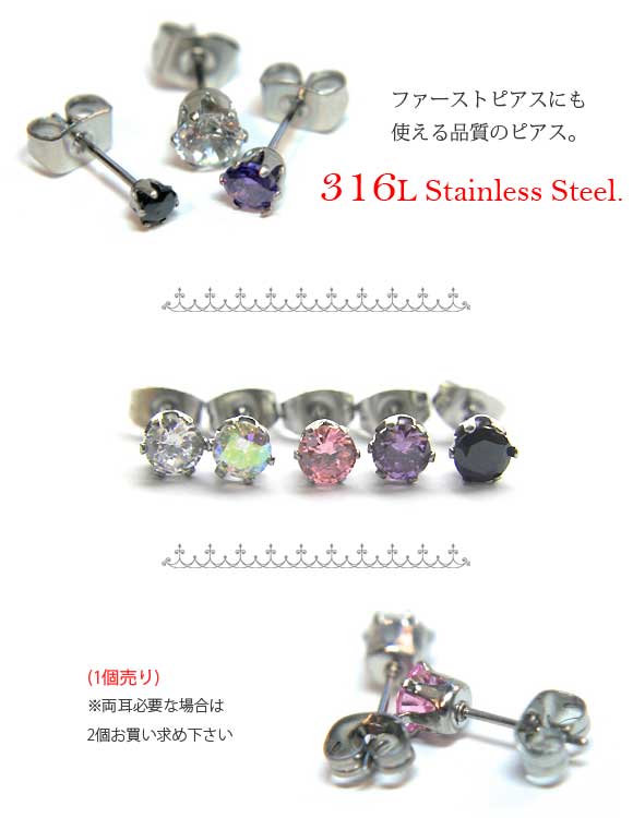 本日P2倍 細い ピアス 金属アレルギー 片耳 一粒ピアス ラウンド 4mm サージカルステンレス 金属アレルギー対応 316L ステンレス 立爪 ファーストピアス
