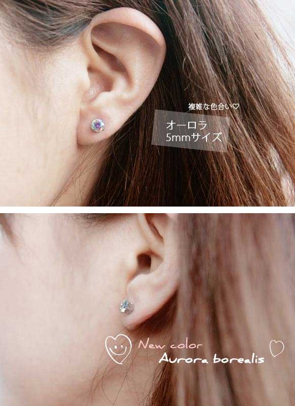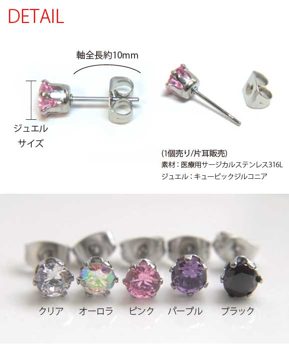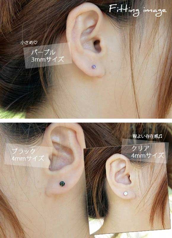 ピアス 金属アレルギー対応 つけっぱなし ファーストピアス 金アレ 片耳 クリア ピンク パープル オーロラ シンプル 一粒ピアス メンズ レディース 22ゲージ