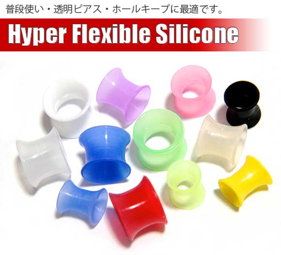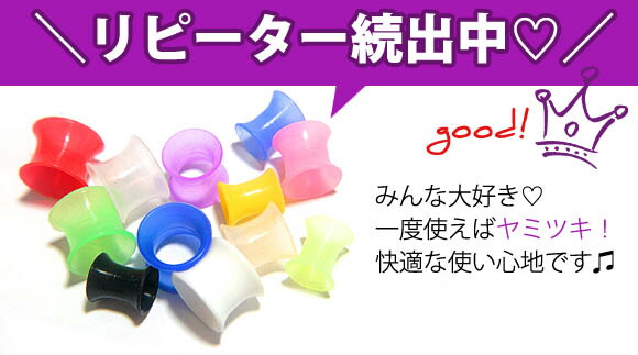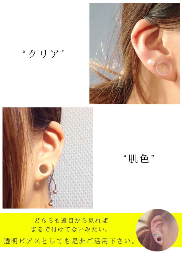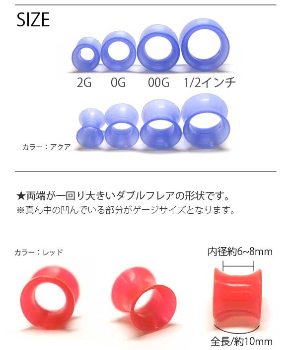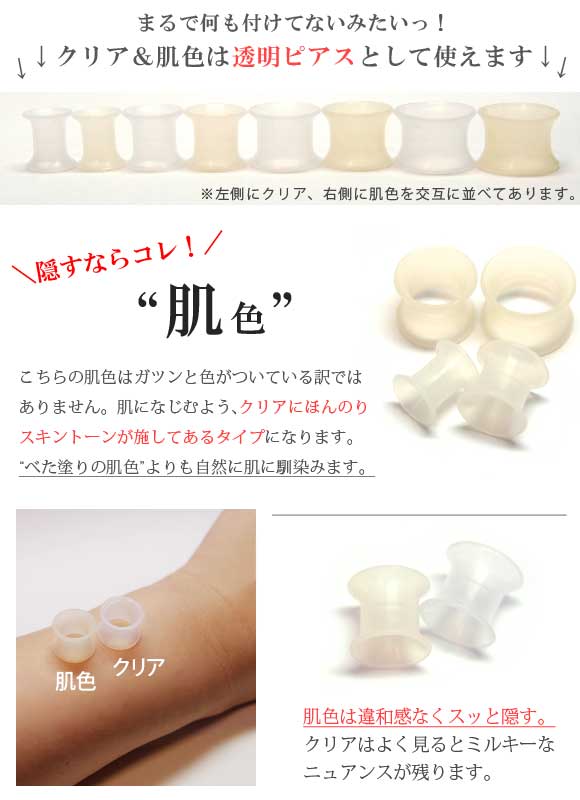 本日P2倍 とにかく使いやすく 0G シリコン ボディピアス 柔らか ダブルフレア アイレット プラグ カラー 透明ピアス 拡張器