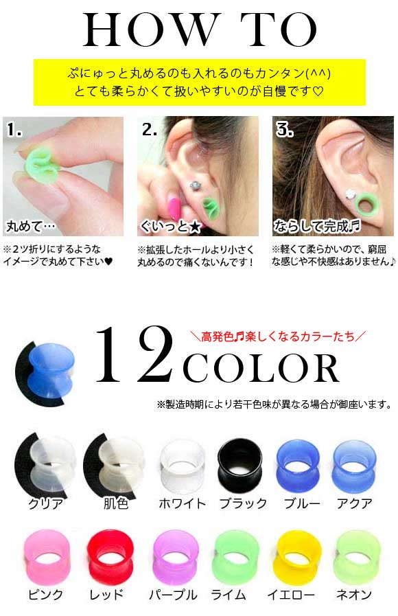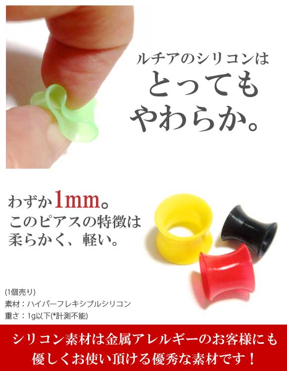 0ゲージ ピアス 金属アレルギー対応 つけっぱなし カラー シリコン やわらかい 柔らかい 軽い 拡張 プラグ メンズ レディース