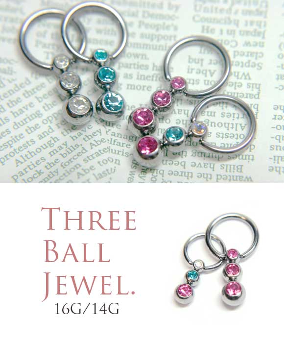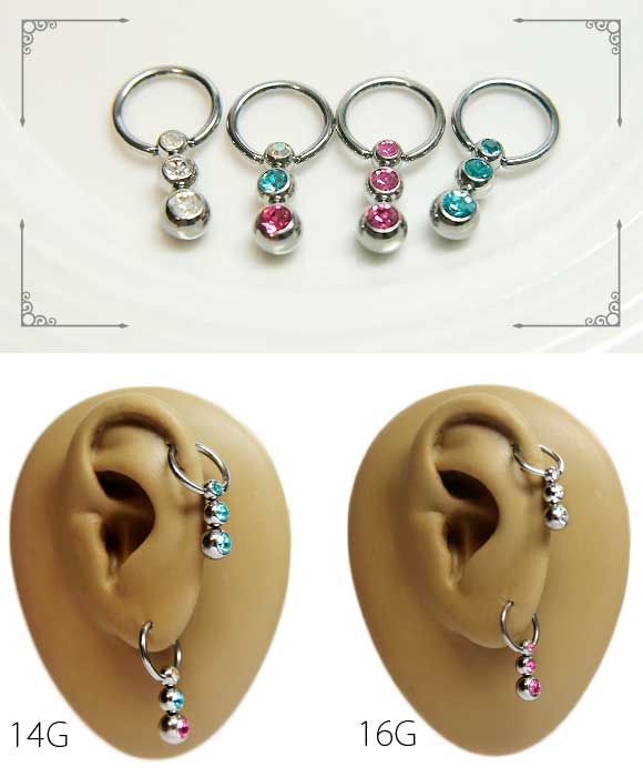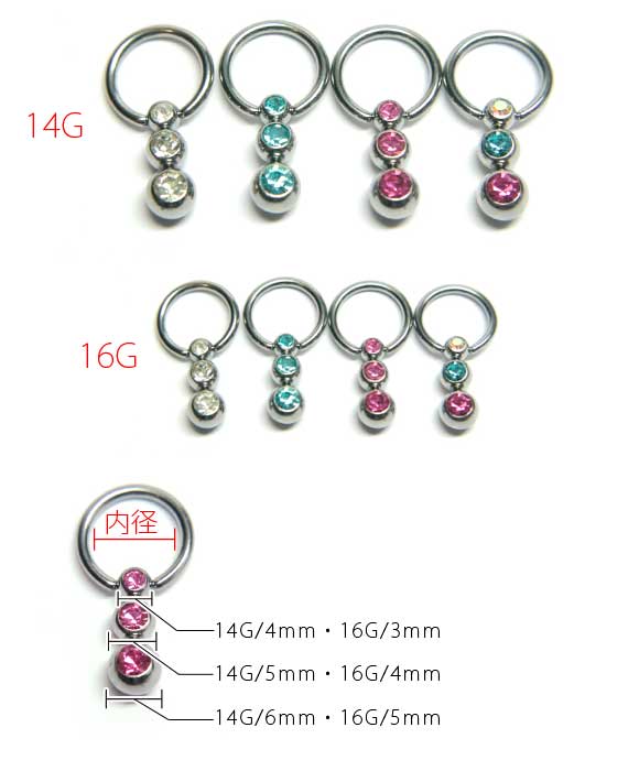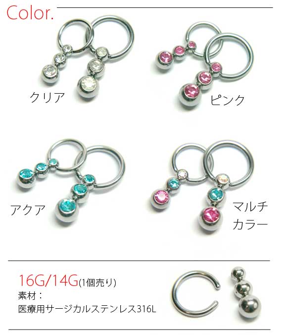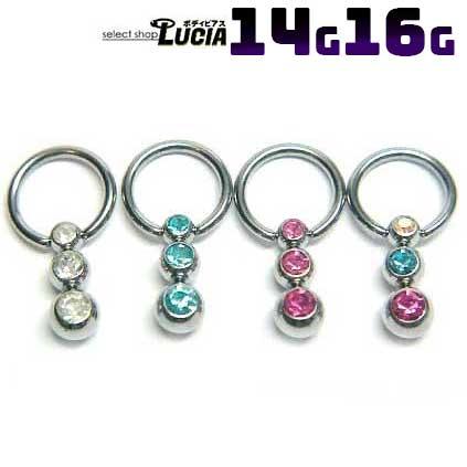 本日P2倍 調整済 16G 14G ピアス ボディピアス 3連ジュエルボール キャプティブビーズリング CBR 金属アレルギー対応 316L 高品質 ステンレス