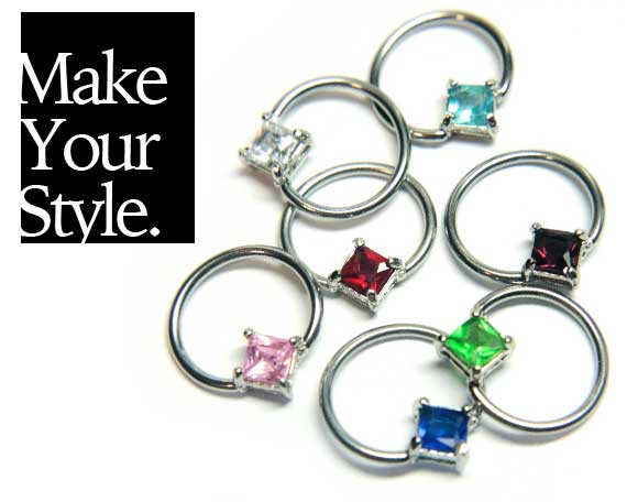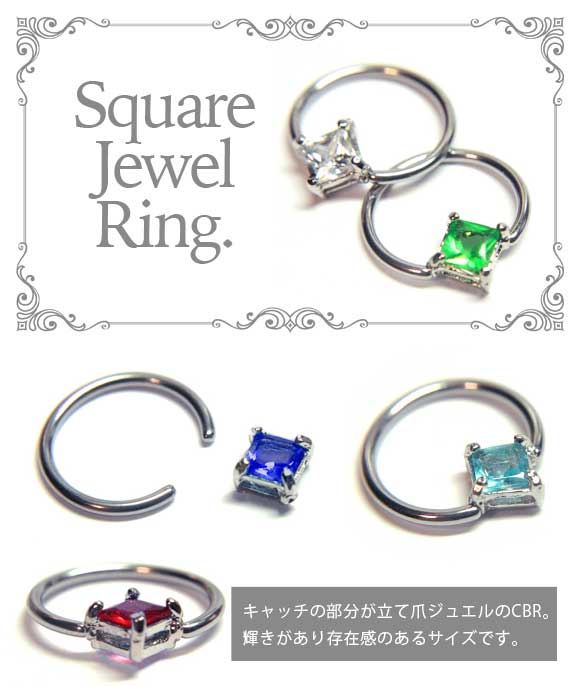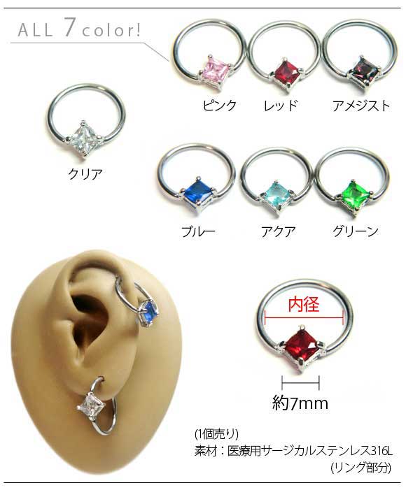 本日P2倍 調整済 14G ピアス ボディピアス キャプティブビーズリング 立爪 スクエア ジュエル CBR 金属アレルギー対応 316L 高品質 ステンレス 軟骨ピアス