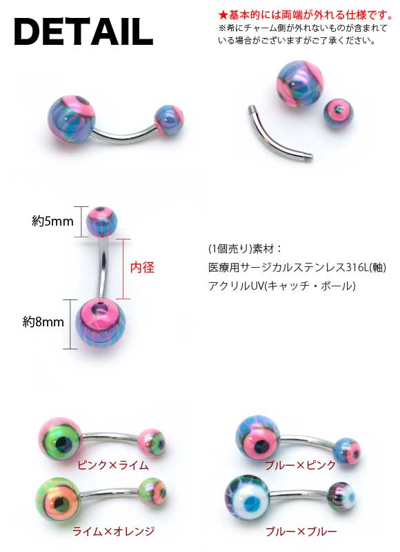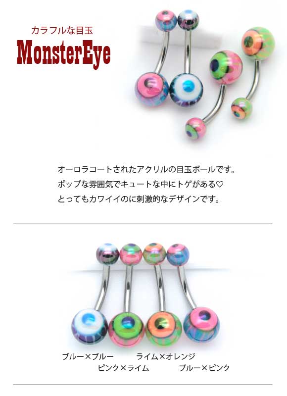 本日P2倍 14G ピアス ボディピアス ネオンカラー 目玉へそピアス モンスターアイ 金属アレルギー対応 316L 高品質 ステンレス
