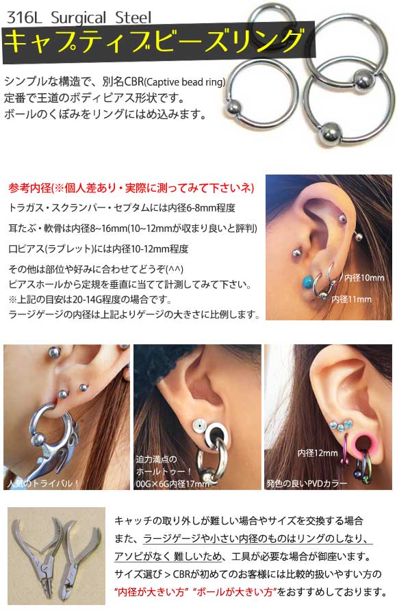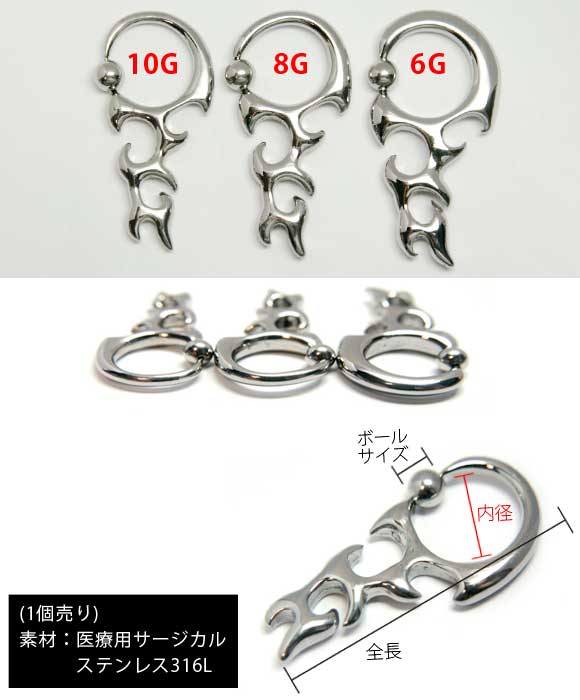 本日P2倍 8G ピアス ボディピアス ロング ファイヤートライバル 変形キャプティブビーズリング CBR 金属アレルギー対応 316L 高品質 ステンレス 特殊