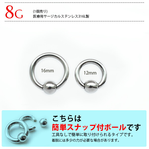 本日P2倍 簡単 ワンタッチ 8G ボディピアス リング ピアス キャプティブビーズリング CBR フープ つけっぱなし 金属アレルギー対応 316L 高品質 ステンレス