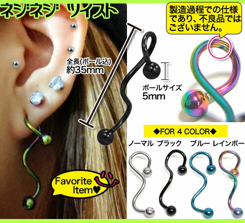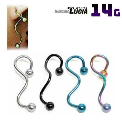 本日P2倍 ねじねじ 14G ピアス ボディピアス ロングツイストスパイラルバーベル ムーンサルト PVD カラー 金属アレルギー対応