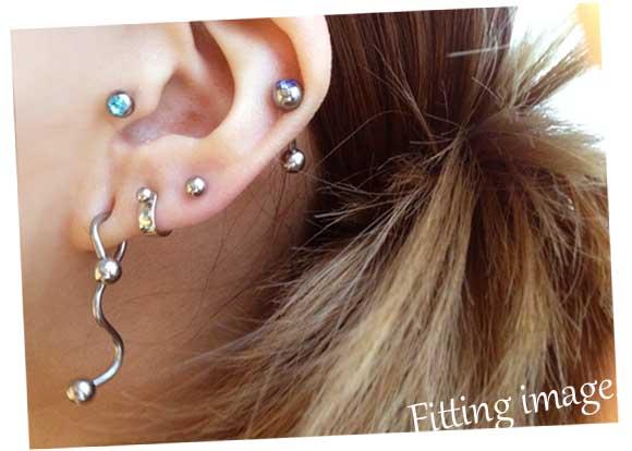 耳たぶに付けたり、インダストリアルに通したり。軟骨から付けても◎