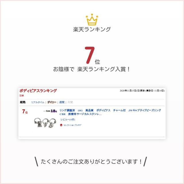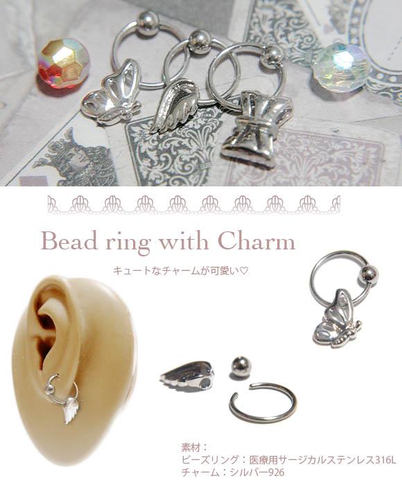 本日P2倍 調整済 18G ピアス ボディピアス チャーム付 キャプティブビーズリング CBR 金属アレルギー対応