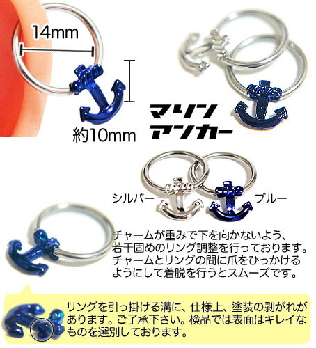 本日P2倍 調整済 14G ピアス ボディピアス 碇 マリンアンカー キャプティブビーズリング CBR 金属アレルギー対応