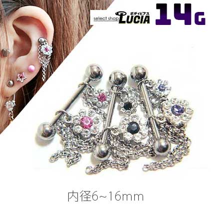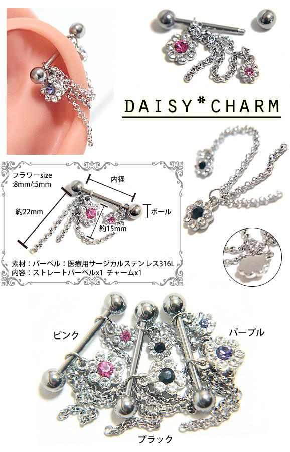 本日P2倍 14G ピアス ボディピアス デイジーフラワー チェーン ストレートバーベル 金属アレルギー対応 316L 高品質 ステンレス 軟骨ピアス ニップル