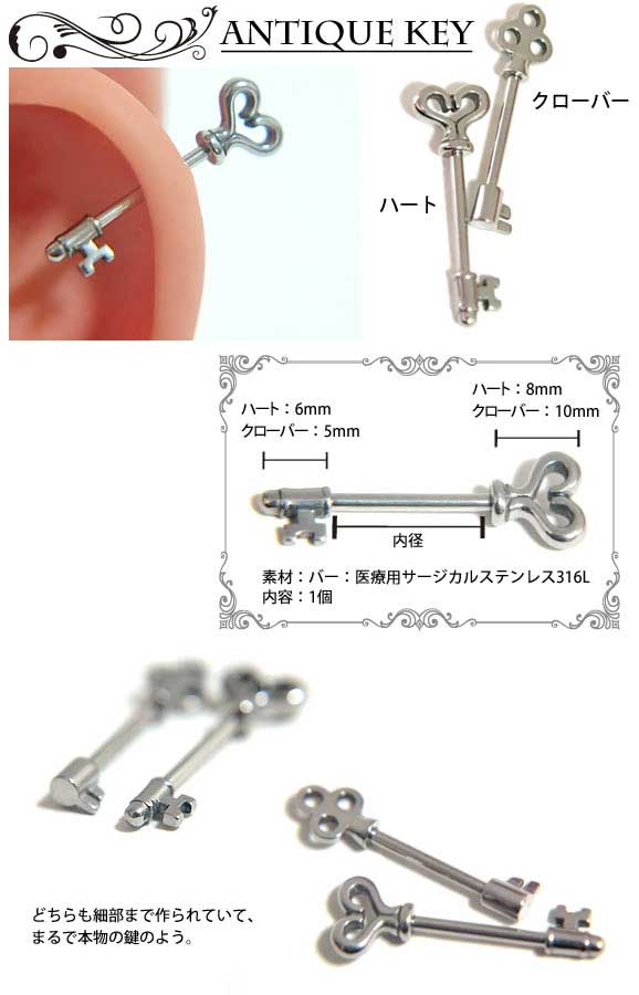 本日P2倍 14G ピアス ボディピアス ストレートバーベル アンティークキー 鍵 可愛い 金属アレルギー対応 316L 高品質 軟骨ピアス ニップル