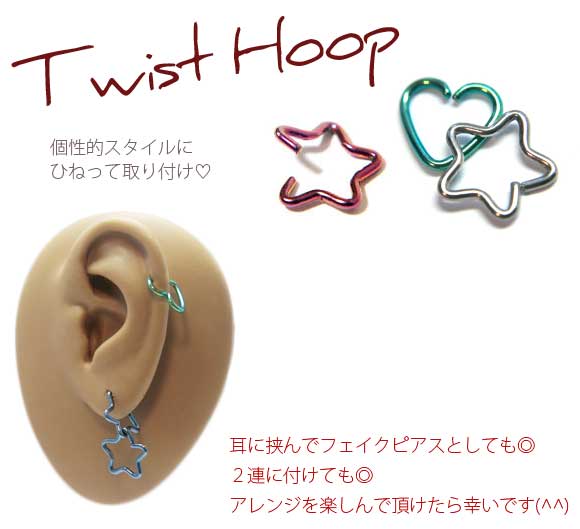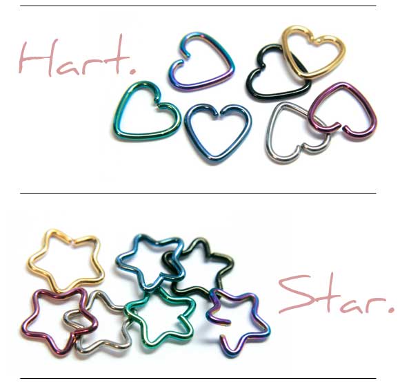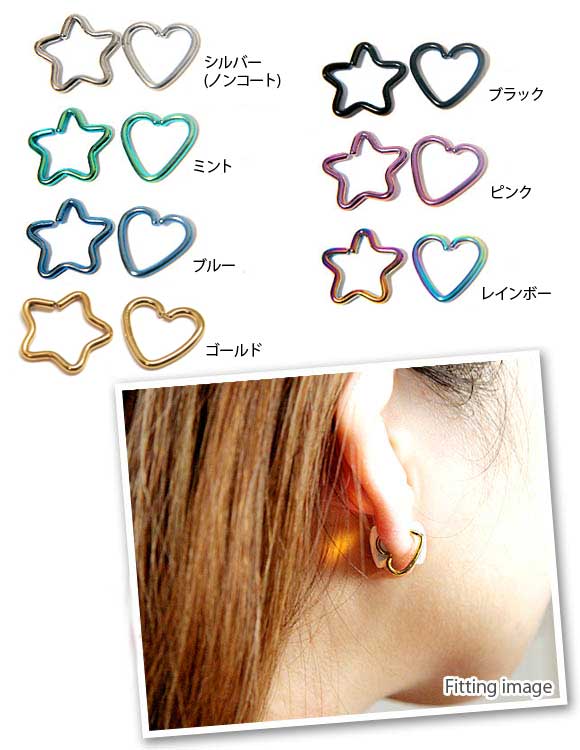 星型、ハート型に象られたリングピアス。