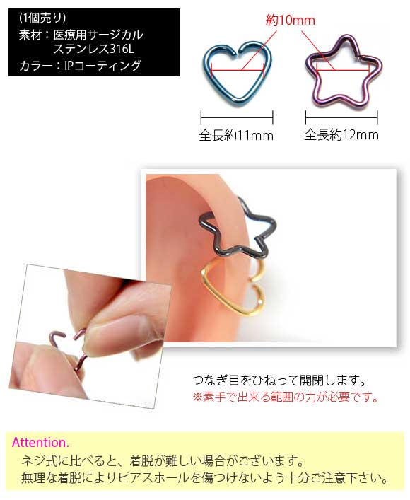 本日P2倍 16G ピアス ボディピアス ハート スター シームレスリング 金属アレルギー対応 316L 高品質 ステンレス フープ リング 軟骨ピアス