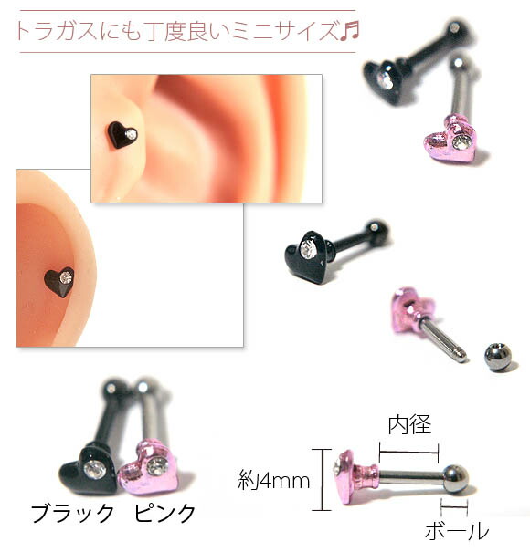 本日P2倍 内径が選べる 16G ピアス ボディピアス ストレートバーベル 小さい メタル ハート 軟骨ピアス 金属アレルギー対応 316L 高品質 ステンレス 極小