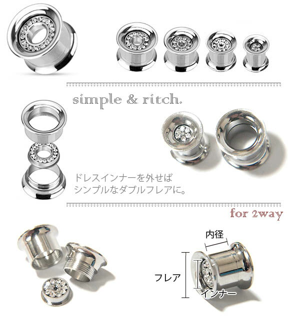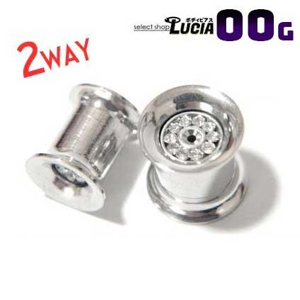 本日P2倍 00G ピアス ボディピアス 2Way 大きめ ダブルフレア CZインナーでリッチに変身 プラグ 金属アレルギー対応 316L 高品質 ステンレス